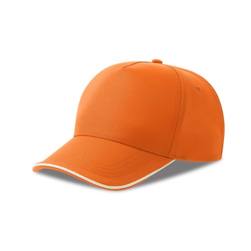 Бейсболка RECY FIVE PIPING, 5 клиньев, застежка-липучка, оранжевый/белый 100% полиэстер, 220 г/м2