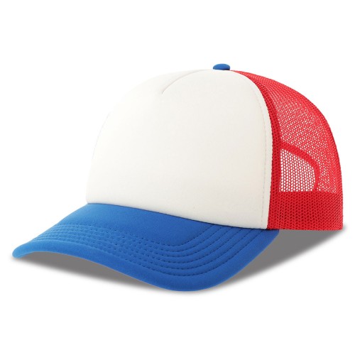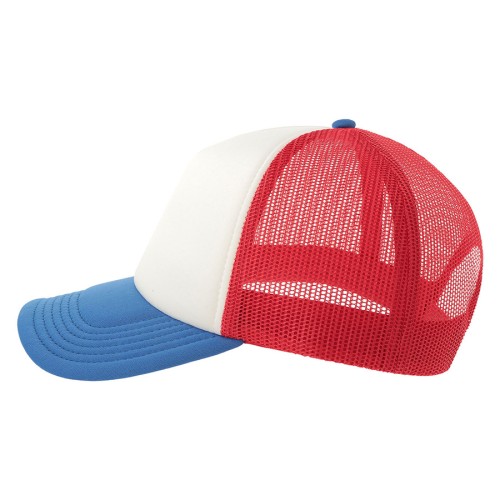 Бейсболка "RAPPER-S", 5 клиньев, пласт. заст, бел/красн/синий,100% переработанный полиэстер, 80 г/м2