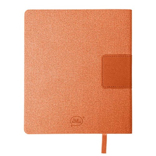 TWEEDI – бизнес-блокнот в мягкой обложке,Размер,150*180 мм,Обложка из PU Nubbi c,декоративным,элементом,из PU Suede,Цвет обложки близок к pantone 166CВнутренний блок 256 страниц в линейкуИдеально скругленные углы блокаПерфорированные 8 последних листов,Кремовая eco-friendly эвкалиптовая FSC бумага 70 г/м2Ляссе в тон обложкиИндивидуальная упаковка: фирменный thINKme sleeve-box ,