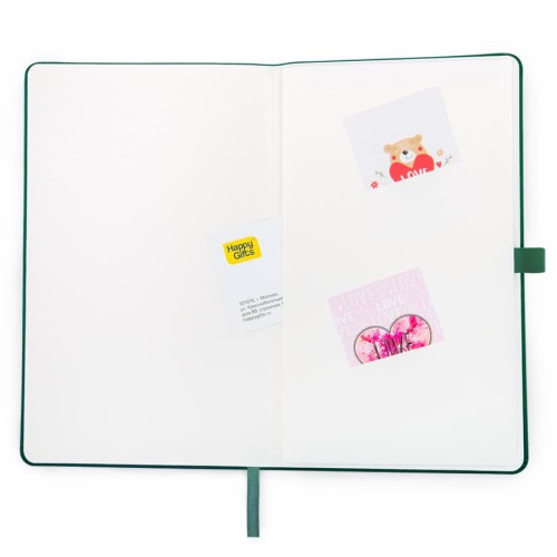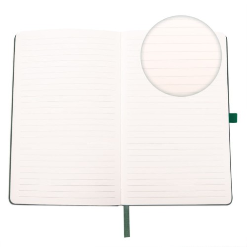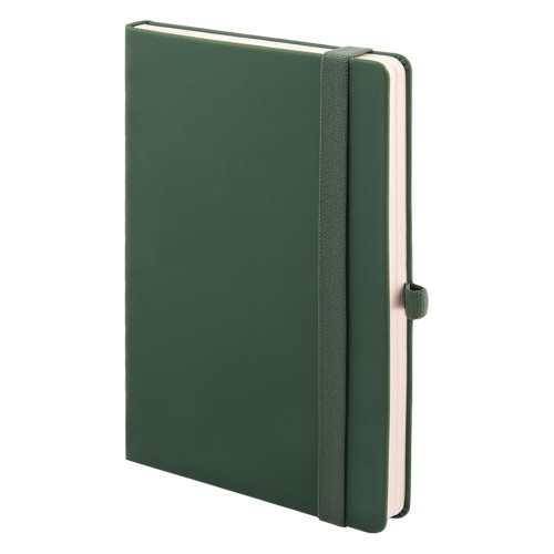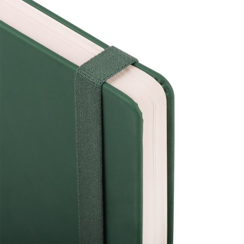 Самый популярный блокнот в твердой обложке, с эластичной резинкой, пенхолдером и ляссе в тон.Термоактивный классический PU материал Silk PlusЦвет обложки, близкий к Pantone,3435СВнутренний блок 256 страниц в линейкуИдеально скругленные углы блокаПерфорированные 8 последних листовКремовая FSC бумага 70г/м2Карман для мелочейИндивидуальная упаковка: прозрачный сливбокс