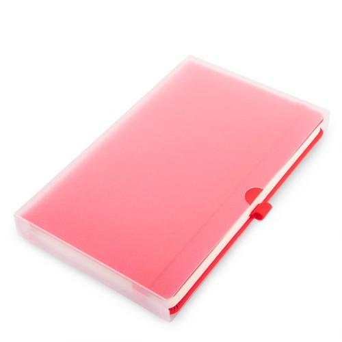 Самый популярный блокнот в твердой обложке, с эластичной резинкой, пенхолдером и ляссе в тон.Термоактивный классический PU материал Silk PlusЦвет обложки, близкий к Pantone,200СВнутренний блок 256 страниц в линейкуИдеально скругленные углы блокаПерфорированные 8 последних листовКремовая FSC бумага 70г/м2Карман для мелочейИндивидуальная упаковка: прозрачный сливбокс,