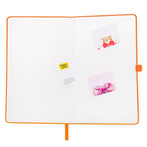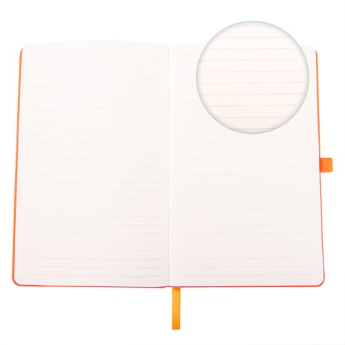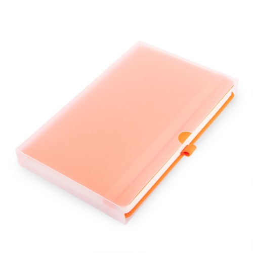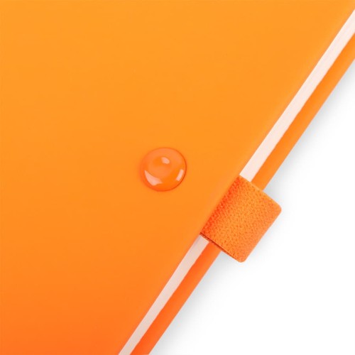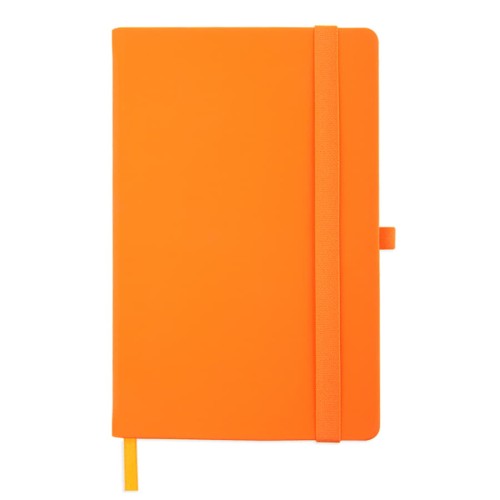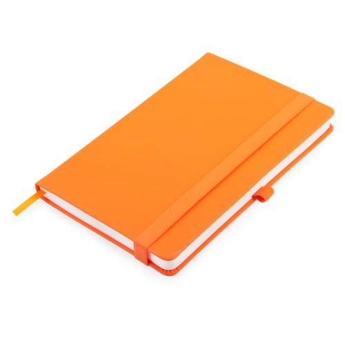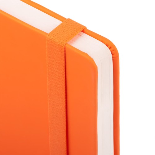 Самый популярный блокнот в твердой обложке, с эластичной резинкой, пенхолдером и ляссе в тон.Термоактивный классический PU материал Silk PlusЦвет обложки, близкий к Pantone,158CВнутренний блок 256 страниц в линейкуИдеально скругленные углы блокаПерфорированные 8 последних листовКремовая FSC бумага 70г/м2Карман для мелочейИндивидуальная упаковка: прозрачный сливбокс