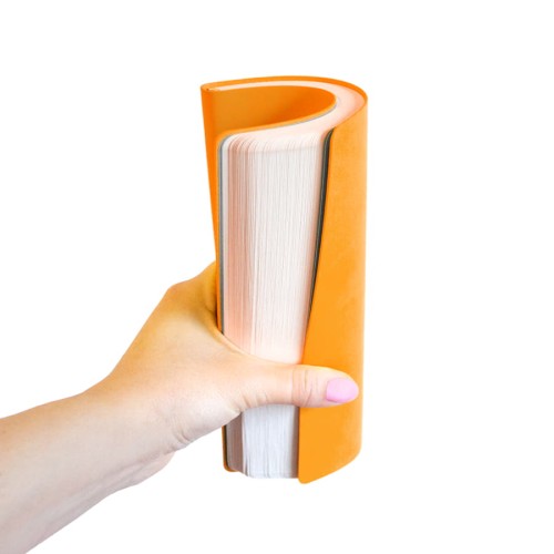 Блокнот,с мягкой термоактивной обложкой и,популярной,комбинацией цветов Термоактивный PU материал,Velvet Цвет обложки, близкий к Pantone 158C Цвет форзаца, близкий к Pantone Cool Gray 5U Внутренний блок 256 страниц,в линейку Идеально скругленные углы блока Перфорированные,8 последних листов Кремовая FSC бумага,70 г/м2 Ляссе в тон обложки Индивидуальная упаковка: фирменный сливбокс thINKme