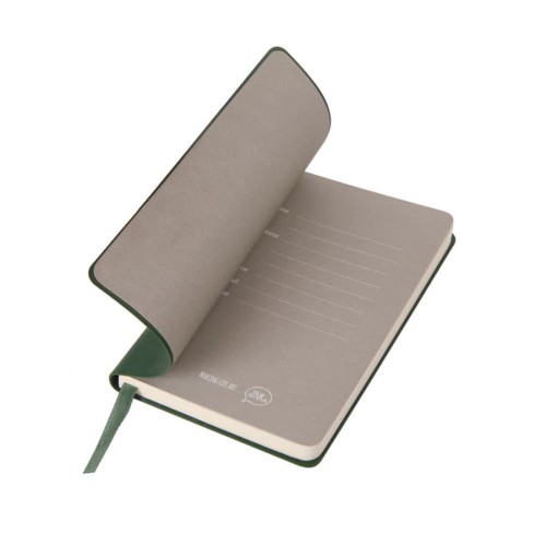 Блокнот,с мягкой термоактивной обложкой и,популярной,комбинацией цветов Термоактивный PU материал,Velvet Цвет обложки, близкий к Pantone 3435С Цвет форзаца, близкий к Pantone Cool Gray 5U Внутренний блок,192 страницы,в клетку Идеально скругленные углы блока Перфорированные,8 последних листов Кремовая FSC бумага,70 г/м2 Ляссе в тон обложки Фирменный сливбокс thINKme