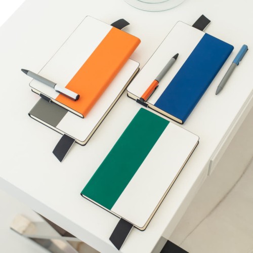 Размер: 130х210 мм Переплет: мягкий Обложка:,термоактивный PU Silk Plus Цвет обложки: белый и близкий к pantone 2333C, с контрастным черным кантом по краю обложки Форзац/нахзац: кремовый Блок: недатированный Разлиновка:,в линейку Количество страниц: 256 Углы блока: скругленные Цвет бумаги: кремовый Плотность,бумаги:,70г/м2 Ляссе: PU черного цвета с контрастным белым кантом Карман для визиток: есть, Упаковка:,фирменный сливбокс thINKme
