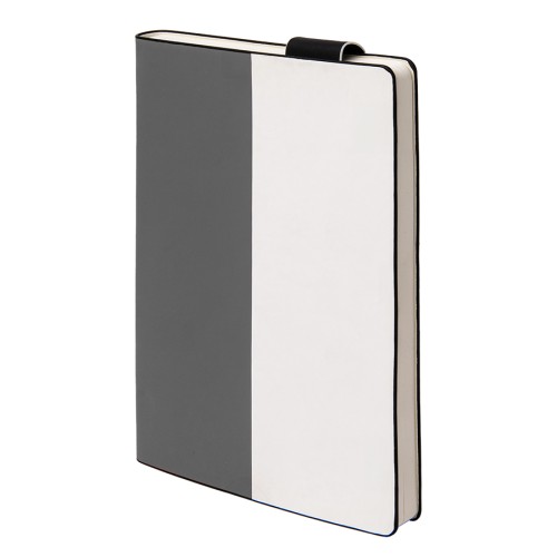 Бизнес-блокнот UNI, A5, бело-темно-серый, мягкая обложка, в линейку, черное ляссе