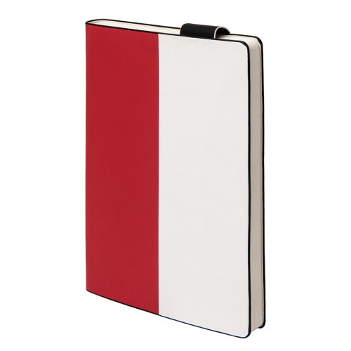 Бизнес-блокнот UNI, A5, бело-красный, мягкая обложка, в линейку, черное ляссе