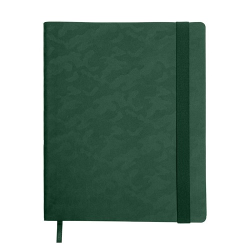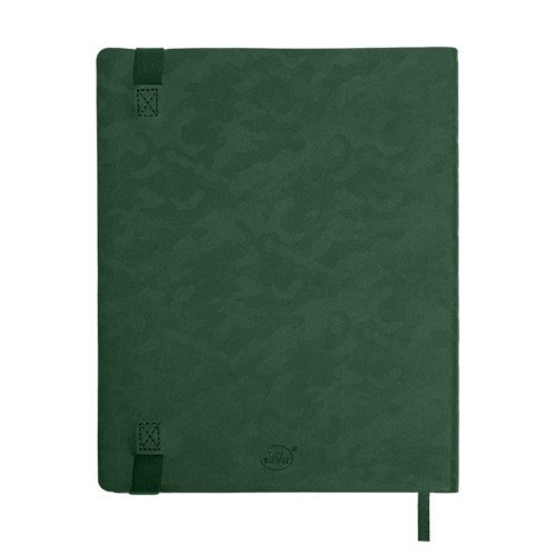 Эксклюзивный ультрамодный блокнот ipad-size с паттерном камуфляж FSC сертификат Гибкая,термоактивная обложка PU Camou эксклюзивно для thINKme Эластичная soft-touch резинка 15 мм в тон обложке Конверт для записок Пантон, близкий к 3435C Кремовая бумага (блок 70 гр, форзац 160 гр) Блок,256 стр.,в клетку Перфорация 8 последних листов Ляссе в тон обложки Практичные закругленные углы Надежный прошитый переплет Упаковка: фирменный слив-бокс