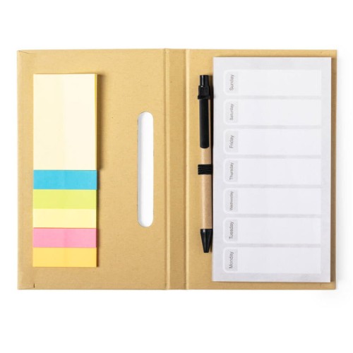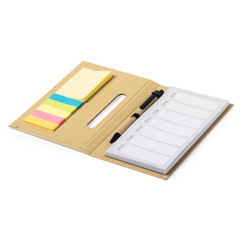 Набор - блокнот со стикерами и ручкой KENDIL - ,влючает в себя блокнот на 60 листов с разметкой по дням недели с 25 стикерами (5*7,5 см) ,и 125 мини-стикерами (1,5 х 5 см) шариковую ручку с кнопочным механизмом, корпусом из переработанного картона, деталями из ABS-пластика и синими чернилами Этот блокнот станет отличным партнером и подарком для тех, что любит, умеет или хочет научиться управлять своим временем.