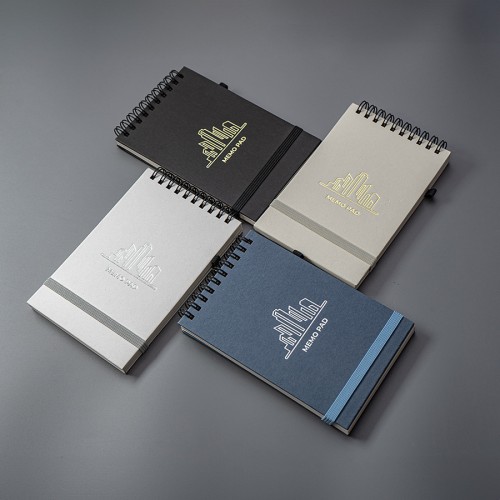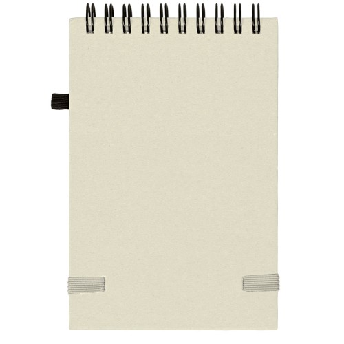Блокнот на спирали,MEMO, размер 95*145 мм, обложка твердая, переработанное натуральное волокно, 60 листов из переработанной бумаги, 80 г/м2. Резинка-пенхолдер и резинка для фиксации.Ручка в комплект не входит