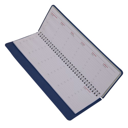Цвет обложки, близкий к пантону 7686C Размер 140*300 мм Переплет твердый, на металлической спирали, прошивка по периметру верхней обложки Обложка PU Velvet Блок недатированный, в линейку, прямые углы Бумага белая, плотность 70 г/м2 Форзац/нахзац серые 128 страниц Упаковка крафтовый сливбоксВ данный момент происходит смена справочной части блока. Внешний вид изделия остается без изменений. ,