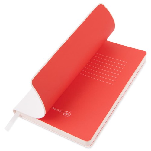 Блокнот,с мягкой термоактивной обложкой и,популярной,комбинацией цветовТермоактивный PU материал,VelvetЦвет обложки белыйЦвет форзаца, близкий к Pantone,Red 2035UВнутренний блок 256 страниц,в точкуИдеально скругленные углы блокаПерфорированные,8 последних листов,Кремовая FSC бумага,70 г/м2Ляссе в тон обложкиИндивидуальная упаковка: фирменный сливбокс thINKme