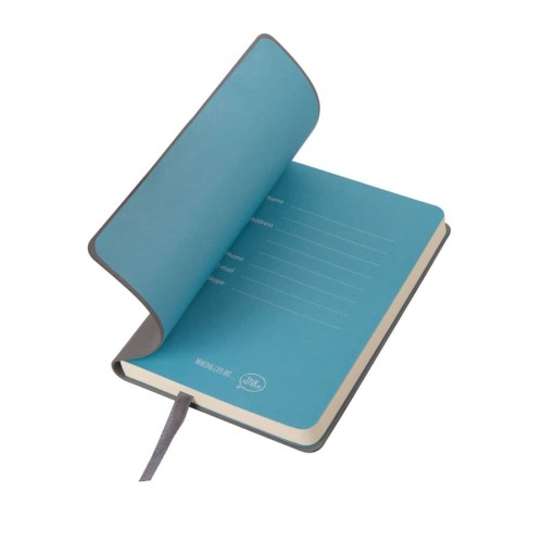 Бизнес-блокнот "Funky", 90*140 мм, серый, голубой форзац, мягкая обложка, в клетку