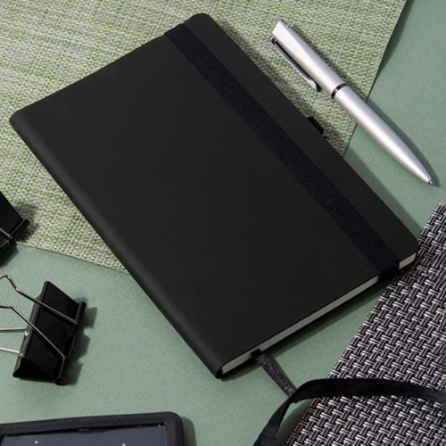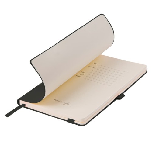 Soft-touch блокнот с покрытием, защищающим от царапин FSC сертификат Мягкая термоактивная обложка PU нового поколения Silk Plus Пантон, близкий к BlackC Кремовая бумага (блок 70 гр, форзац 160 гр) Блок 192 стр.,в линейку Перфорация 8 последних листов. Ляссе в тон обложке. Практичные закругленные углы. Надежный прошитый переплет. Упаковка: фирменный слив-бокс