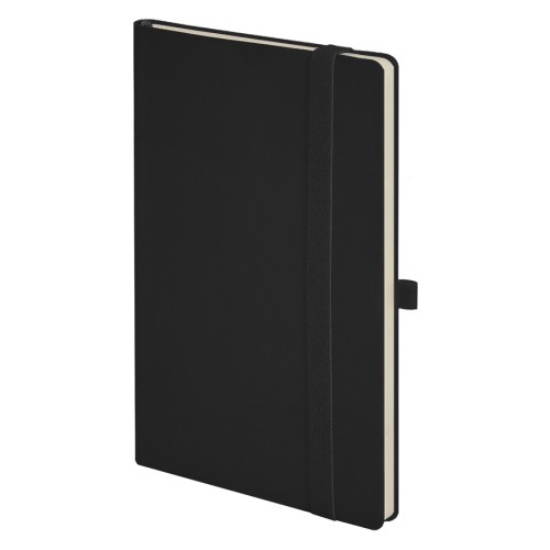 Бизнес-блокнот GRACY, 130х210 мм, черный, кремовая бумага, гибкая обложка, в линейку, на резинке