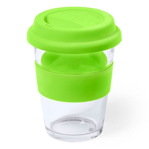 Стакан DURNOX с силиконовой крышкой, прозрачный с зеленым, 350мл, 12,4х9,5см, стекло, силикон