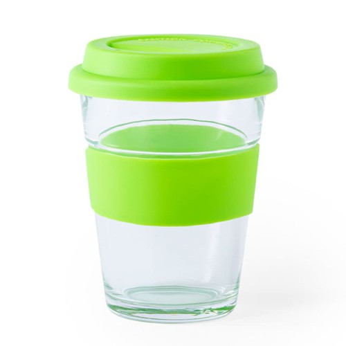 Стеклянный стакан с цветной силиконовой крышкой и манжетой. Манжета обеспечивает безопасность ваших рук при использовании стакана для горячих напитков. Индивидуальная упаковка - белая картонная коробка с изображением продукта.