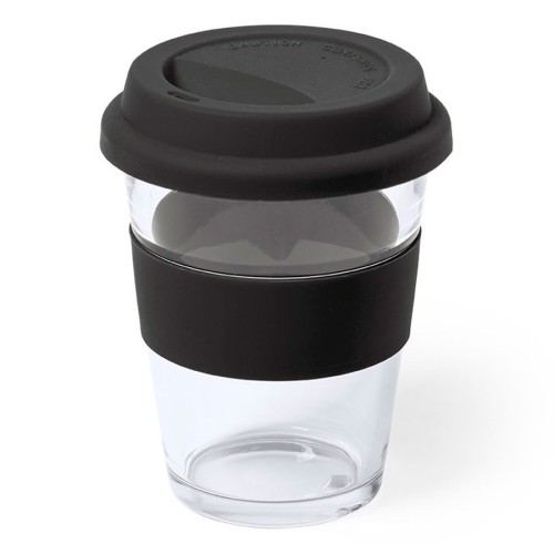 Стакан DURNOX с силиконовой крышкой, прозрачный с черным, 350мл, 12,4х9,5см, стекло, силикон