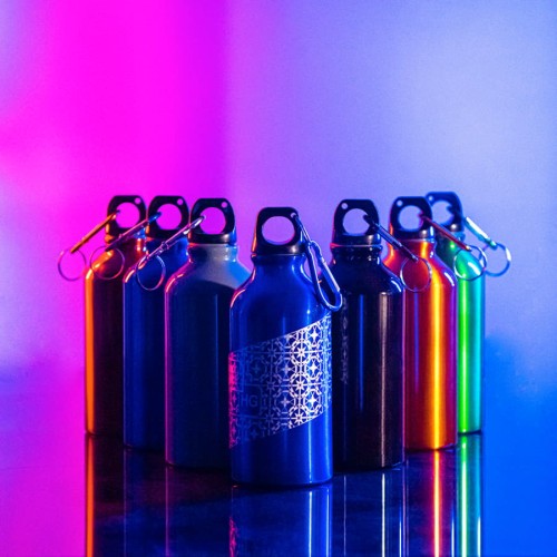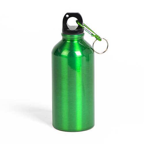 Цветная алюминиевая бутылка с удобной навинчивающейся пробкой и карабином для крепления к рюкзаку, сумке или одежде. Потребление воды один из важнейших пунктов правильного питания. Средняя норма: 2,0-2,5 литра в сутки Бутылка имеет оптимальную емкость - 400мл. Удобно пить и носить с собой.Цвет близкий к,Pantone 347C , Упаковка:,ПЭ пакет,