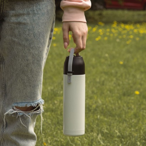 Вакуумный термос Rope с двойными стальными стенками. , Важная деталь - ремешок - является не только декором, но и выполняет роль ручки. Для этого нужно застегнуть ее на дальнее отверстие. , Сохраняет тепло,до 12 часов,в зависимости от температуры окружающей среды.