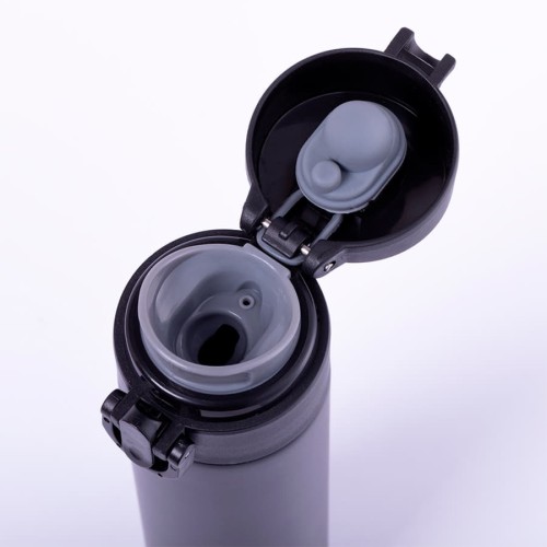 Вакуумный термос объемом 330 мл из нержавеющей стали. Двойная стенка для лучшего и длительного сохранения температуры напитков,,простой механизм открывания с помощью кнопки. Оснащен специальным замком, который защищает от случайного открывания и проливания. Сохраняет напиток горячим до 6 часов, холодным - до 15 часов Индивидуальная упаковка