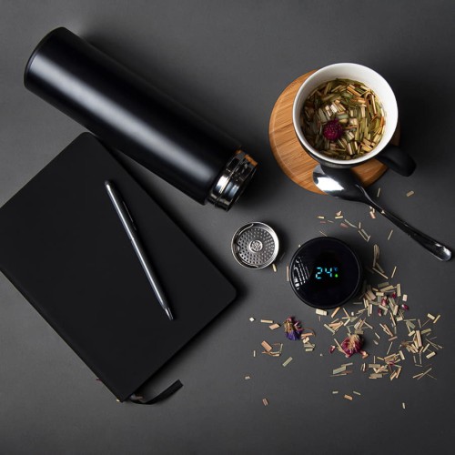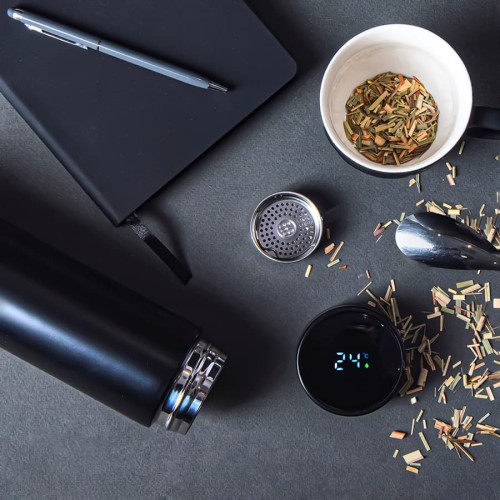 Вакуумный термос надолго сохранит температуру вашего напитка, а электронный термометр,, расположенный на крышке, подскажет точную температуру его содержимого.,Термос имеет навинчивающуюся крышечку и ситечко.Работает от встроенных батареек в крышке, батарейки не съемные.,Расчетное время работы 1000 дней, либо 80000 нажатий.Для активации табло и просмотра температуры необходимо нажать на крышку термоса
