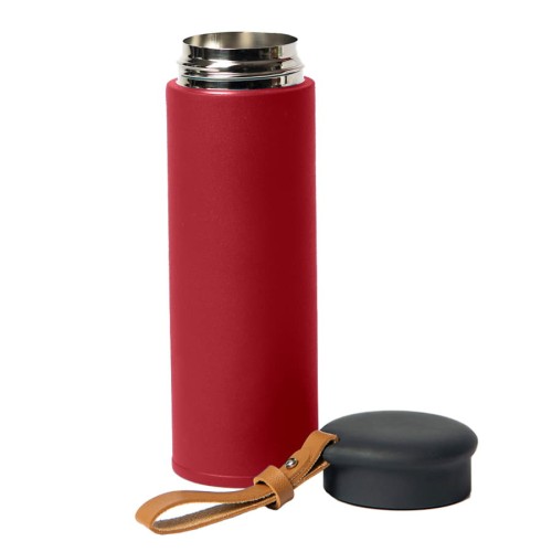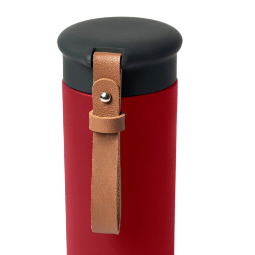 Вакуумный термос STRIPE с двойными стальными стенкамиСтильный матовый корпус термоса из нержавеющей стали (марка 304)Удобный ремешок из искусственной кожи, подходит для персонализацииГерметичная крышка с покрытием soft-touch не даст напитку пролитьсяСохраняет температуру жидкости до 12 часов,в зависимости от температуры окружающей среды.Цвет близкий к Pantone 200,CИндивидуальная упаковка из крафтового картона