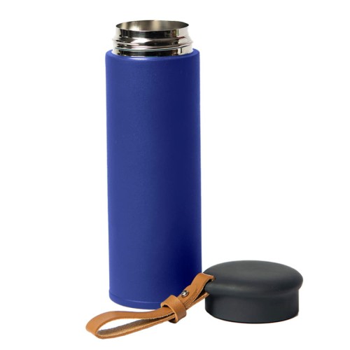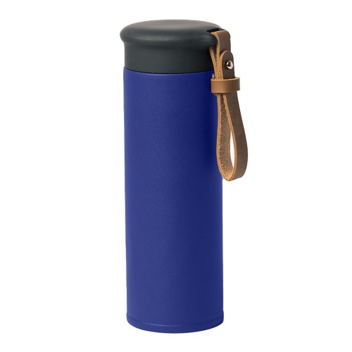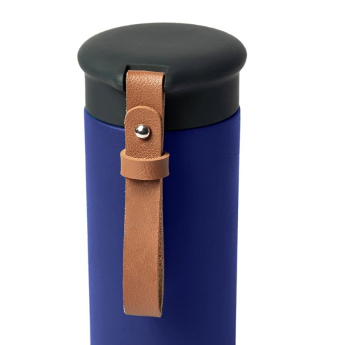 Вакуумный термос STRIPE с двойными стальными стенкамиСтильный матовый корпус термоса из нержавеющей стали (марка 304)Удобный ремешок из искусственной кожи, подходит для персонализацииГерметичная крышка с покрытием soft-touch не даст напитку пролитьсяСохраняет температуру жидкости до 12 часов,в зависимости от температуры окружающей среды.Цвет близкий к Pantone,REFLEX blue CИндивидуальная упаковка из крафтового картона