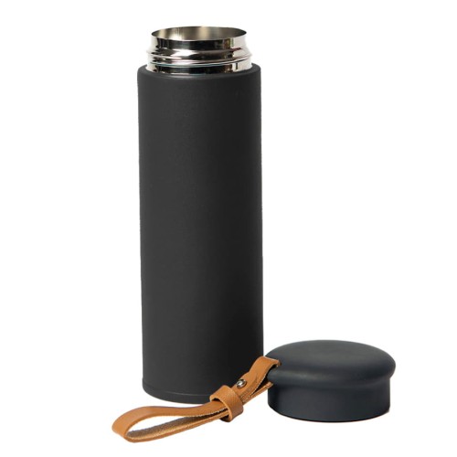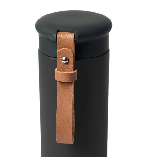 Вакуумный термос STRIPE с двойными стальными стенкамиСтильный матовый корпус термоса из нержавеющей стали (марка 304)Удобный ремешок из искусственной кожи, подходит для персонализацииГерметичная крышка с покрытием soft-touch не даст напитку пролитьсяСохраняет температуру жидкости до 12 часов,в зависимости от температуры окружающей среды.Индивидуальная упаковка из крафтового картона