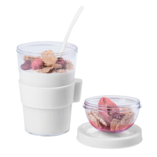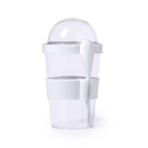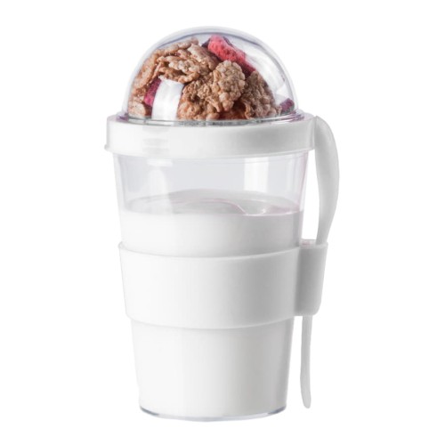 Контейнер для еды YOPLAT с ложкой, белый, 420 мл, 16,3х9см, пластик