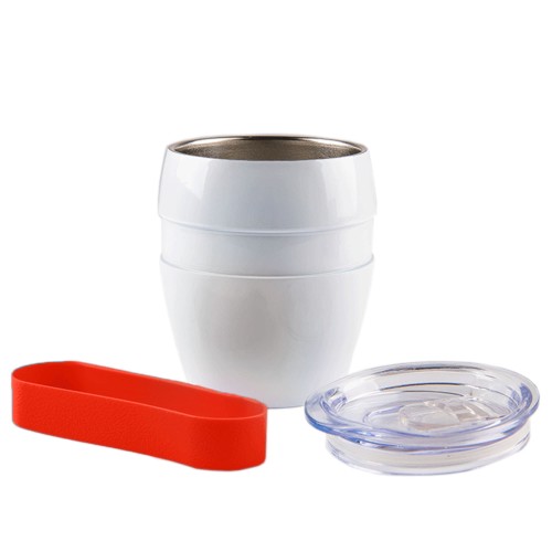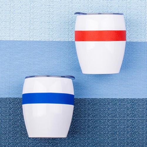 Термокружка,LINE с двойными стальными стенками сохранит напиток горячим до 3х часов, холодным - до 4х часов.Благодаря форме удачно лежит в руке, и за счет резинового браслета не скользит. Высота без крышки 9,7 см, подходит для большинства кофемашин.