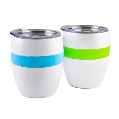 Термокружка,LINE с двойными стальными стенками сохранит напиток горячим до 3х часов, холодным - до 4х часов.Благодаря форме удачно лежит в руке, и за счет резинового браслета не скользит. Высота без крышки 9,7 см, подходит для большинства кофемашин.