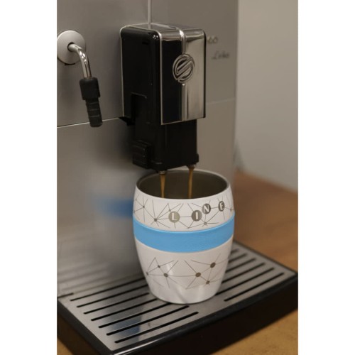 Термокружка,LINE с двойными стальными стенками сохранит напиток горячим до 3х часов, холодным - до 4х часов.Благодаря форме удачно лежит в руке, и за счет резинового браслета не скользит. Высота без крышки 9,7 см, подходит для большинства кофемашин.