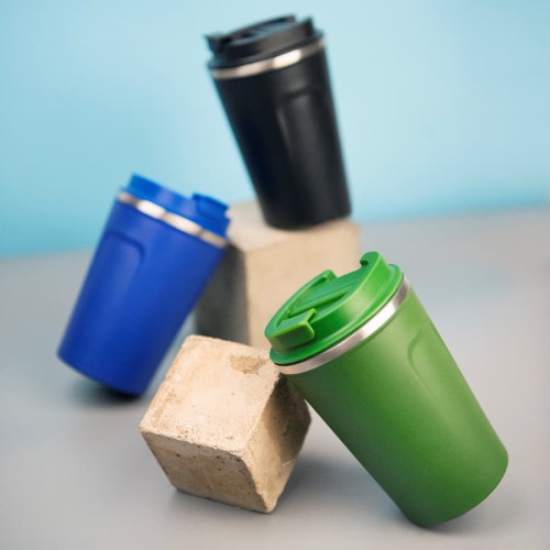 Термокружка-непроливайка с двойными стенками с откидным клапаном для питьяКолба и корпус из нержавеющей стали.Матовая микрорельефная фактура корпуса достигается благодаря особому покрытию - powder coatingЭто специальное порошковое окрашивание, более прочное и долговечное,Сохраняет температуру напитков до 3-4 часов.Индивидуальная упаковка - коробка из крафтового картона