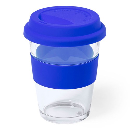 Стакан DURNOX с силиконовой крышкой, прозрачный с синим, 350мл, 12,4х9,5см, стекло, силикон