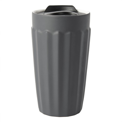 Стакан ZODIAC с крышкой, темно-серый, 345мл, D=8,5см,H=15,5см, тонкая керамика