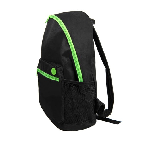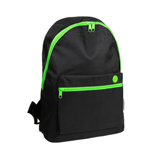 Рюкзак "Town", черный с зелеными молниями, 28х38х12 см, полиэстер 600D
