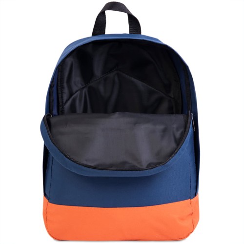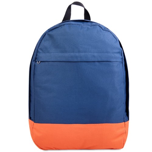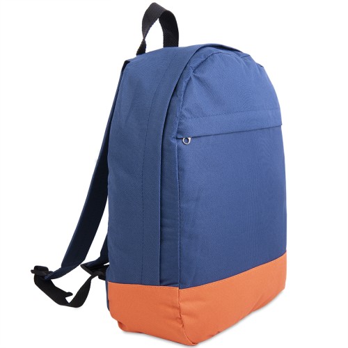 Промо рюкзак из оксфорда плотностью 600D с контрастным дномЗакрытый внешний карман на молнии на передней частиОдно основное отделение на молнии с 2-мя собачкамиМягкие регулируемые лямки и усиленная спинка с поролономОбъём в районе 10 литровВыдержит вес 15 кгОсновная ткань: цвет, близкий к Pantone 654 U,дополнительная вставка: цвет, близкий к Pantone 164 C