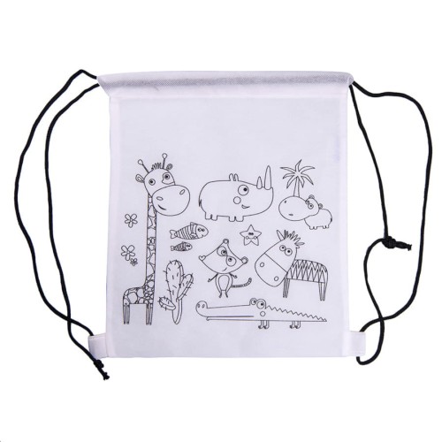 Рюкзак из нетканого материала белого цвета, специально созданный для раскрашивания мелками. В набор входят 5 цветных мелков: синий, красный, зеленый, желтый, черный.Черные ручки-кулисы, усиление по углам.