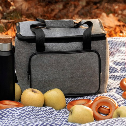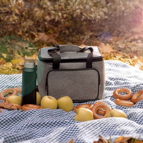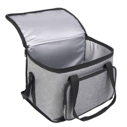 Сумка-холодильник с прочными двойными ручками,лямкой на плечо и внешним карманом на молнии,из прочного меланжевого полиэстра 600D,Внутреннее отделение из,PEVA.Объём:15 литров.