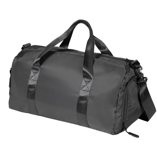 Спортивная, дорожная сумка «Gym» с вместительным основным отделением, большим наружным карманом для мокрых вещей и отделением для обуви — это идеальное приобретение для тех, кто ведет активный образ жизни. Оптимальный размер, легкий вес и необходимый функционал для занятий спортом, фитнесом, йогой, для бассейна и путешествий, в качестве ручной клади и сумки для ежедневного использования. Вместительное основное отделение сумки легко помещает в себя комплект одежды, экипировку для разных видов спорта, мяч, банные принадлежности, бутылку для воды. Во внутренний карман на молнии можно поместить телефон и другие ценные предметы. Водонепроницаемый карман позволяет хранить купальные принадлежности без использования дополнительных пакетов. Специальное отделение для обуви позволяет хранить сменную обувь отдельно от основного содержимого, экономит место. Карман на молнии на боковой части сумки для быстрого доступа к необходимым вещам. Дно уплотнено слоем специального амортизирующего материала толщиной 3 мм. Переносить сумку можно за удобные нейлоновые ручки или используя съемный регулируемый плечевой ремень с резиновой противоскользящей накладкой. Дополнительные швы надежно фиксируют ручки. Надежные реверсивные молнии с большими удобными бегунками позволяют с легкостью открывать и закрывать сумку. Сумка изготовлена из современного износостойкого и водоотталкивающего материала — полиэстера. Ткань имеет гладкую, приятную на ощупь поверхность, обладает отличной устойчивостью цвета к солнечным лучам и легкостью в уходе. Загрязнения легко удаляются с помощью мыла и мягкой влажной губки. Для подкладки используется прочный, устойчивый к воздействию загрязнений полиэстер.