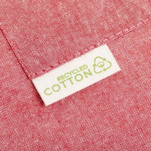 Фартук,из 100% переработанного хлопка, плотностью 120 г/м2. Близкий к, Pantone Red 177 C Переработанный хлопок получается из отходов текстильного производства или из старой одежды. Исходный материал измельчается, потом из этой массы вытягивают нити, из которых ткут новую ткань. В переработанных тканях модная индустрия видит будущее. И оно уже здесь. Передний карман и регулируемые лямки. Вшивной ярлык "переработанный хлопок" в шве кармана.