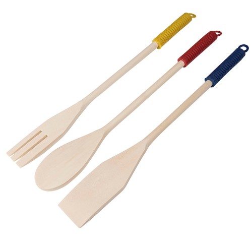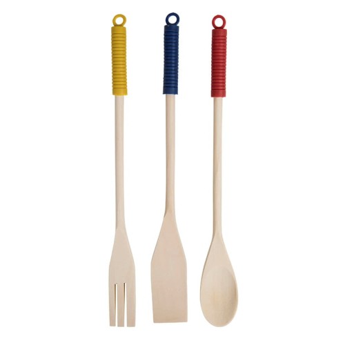 Набор деревянных лопаток KUSINA из клена станет незаменимым помощником на кухне. Посуда с антипригарным покрытием чувствительна к металлическим аксессуарам, тогда как мягкое дерево нежно и аккуратно взаимодействует с поверхностью. Лопатки помогут перевернуть стейк, поправить кекс в форме и сделать много других полезных вещей. Цветные силиконовые наконечники с ребристой поверхностью и удобной петлей позволяют ручкам не скользить в ладони на жаркой кухне. Использование деревянных лопаток имеет целый ряд преимуществ: • исключается вероятность получить ожог: у дерева низкая проводимость тепла, и в отличие от металла оно не нагревается, • они не царапают посуду, ведь дерево податливый и мягкий материал, что дает возможность использовать его для готовки в кастрюлях и сковородках с антипригарным и тефлоновым покрытием, • в отличие от пластика и прочих материалов, натуральный массив не выделяет токсинов и не влияет на вкус блюд. Отличный авторский сет из удобных предметов для кулинарных открытий и экспериментов!