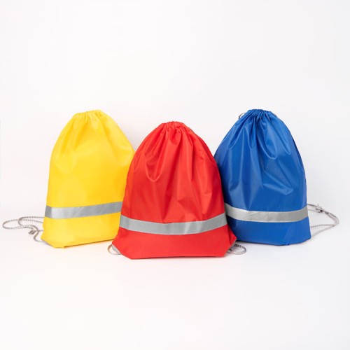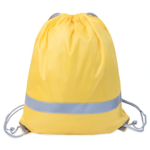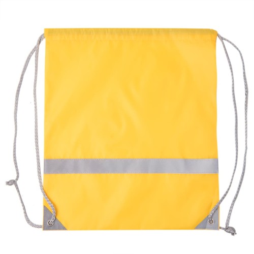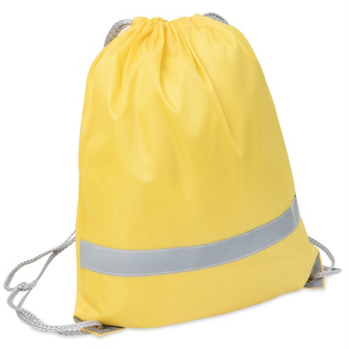 Просто и безопасно!,Рюкзак-мешок RAY из полиэстера 210Dсо светоотражающей полосой спереди,,светоотражающими уголками,усиленными металлическими люверсамиЛегко и просто затягивается по верхней части серыми шнурами.Жёлтый цвет близкий к Pantone 116C