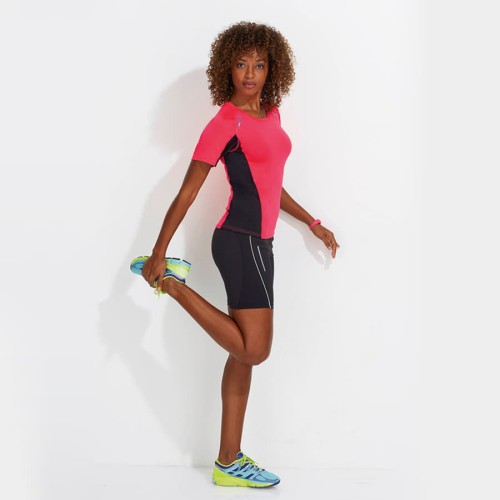 Женская футболка с рукавами реглан для занятий спортом со светоотражающими элементами., Боковые вставки из "дышащей" сетки предназначены для вентиляции и отвода влаги.