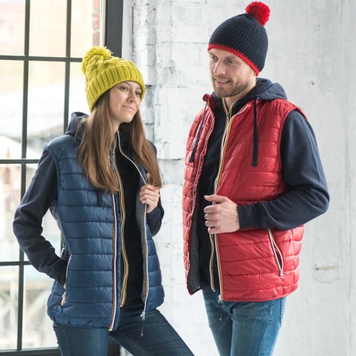 Легкий жилет из нейлона. Небольшой воротник-стойка. Контрастная облегленная пластиковая молния со съемным пуллером. Два передних кармана на молнии. Один внутренний карман на липучке. Cтягивающая эластичная резинка по низу изделия и в рукавах.