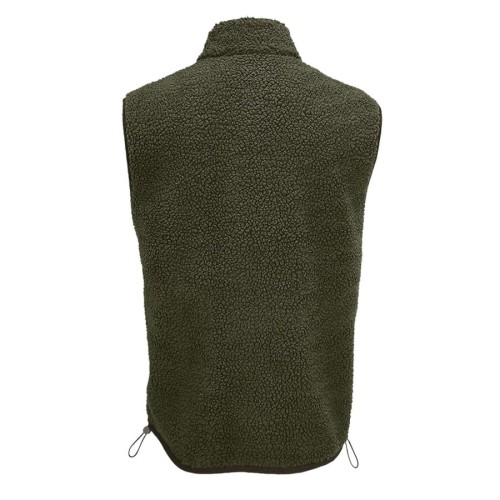 Жилет унисекс из искусственного меха шерпа с карманами на молнии: 1 нагрудным из таслана для нанесения логотипа и 2 боковыми. Черные пуллеры на молниях со светоотражающими элементами.,Слегка удлиненная спинка.,Эластичный шнурок по низу изделия.,