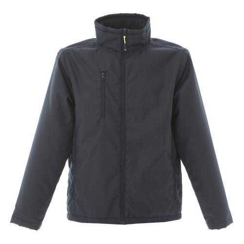 Основная ткань: цвет, близкий к Pantone 5395 U, подкладка: цвет, близкий к Pantone 539 U Водоотталкивающая куртка с флисовой подкладкой. Один нагрудный карман на молнии. Два боковых кармана на молнии. Внутренний карман на липучке. Утягивающий шнурок по низу куртки. Регулируемые манжеты на липучке.