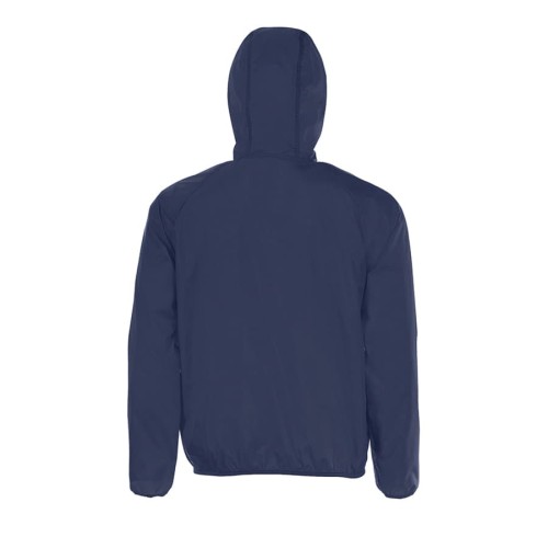 Легкая и компактная ветровка унисекс SHORE из водоотталкивающего и ветрозащитного материала. Два боковых кармана на молнии. Рукава реглан. Манжеты, капюшон и низ ветровки на эластичной тесьме. Молнии ветровки контрастного цвета. Складывается ветровка в свой карман на молнии. Цвет близкий к PANTONE 296C