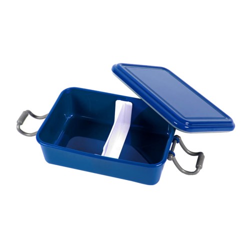 Ланч-бокс с разделителем на 2 секции. Не герметичный. Подходит для использования в микровоолновой печи (со снятой крышкой), в посудомоечной машине, в морозильной камере. Цвет близкий к Pantone 286C , Корпус выполнен из PP-пластика. BPA-free (не содержит бисфенол А).